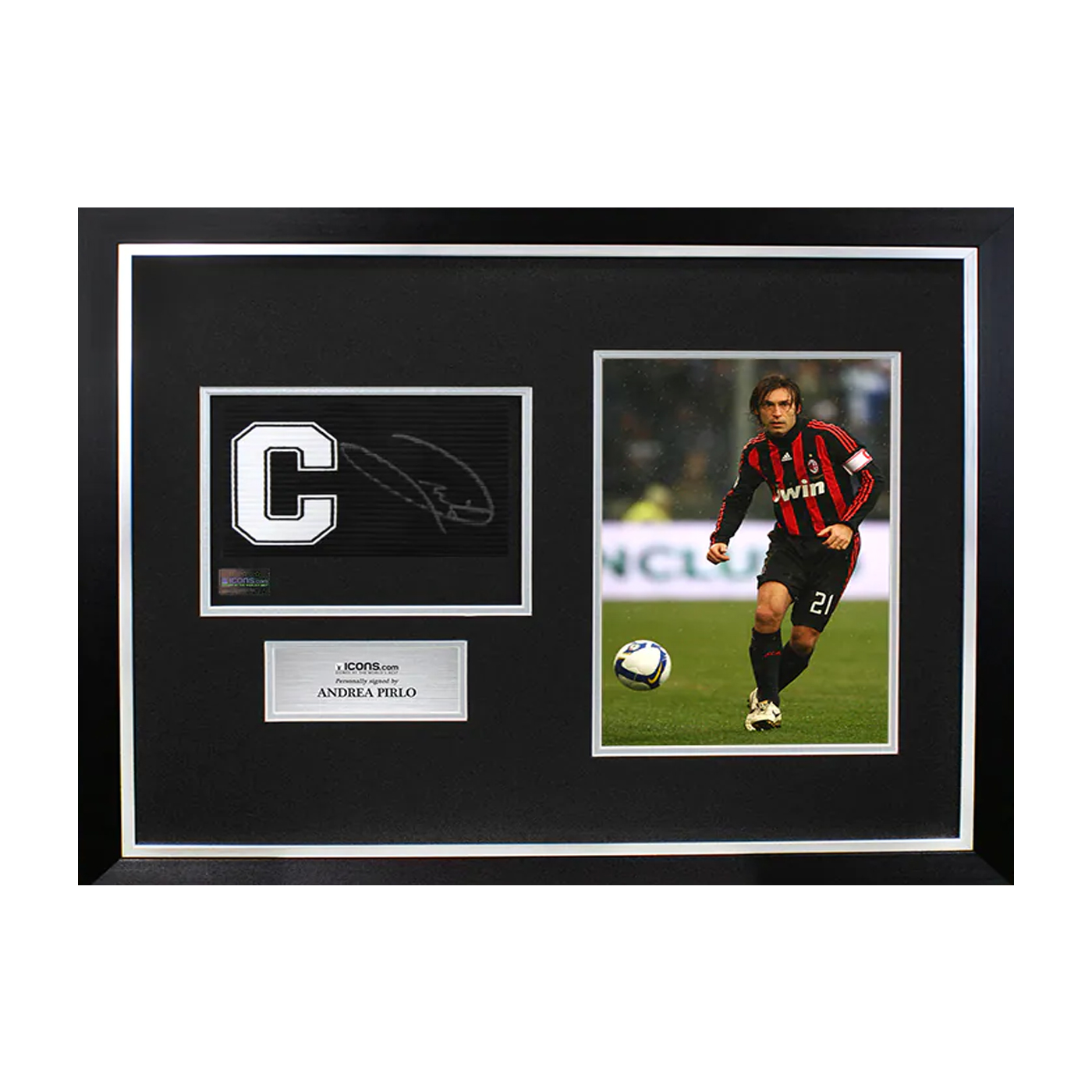 Капитанская повязка ФК "Милан" в рамке с автографом Андреа Пирло