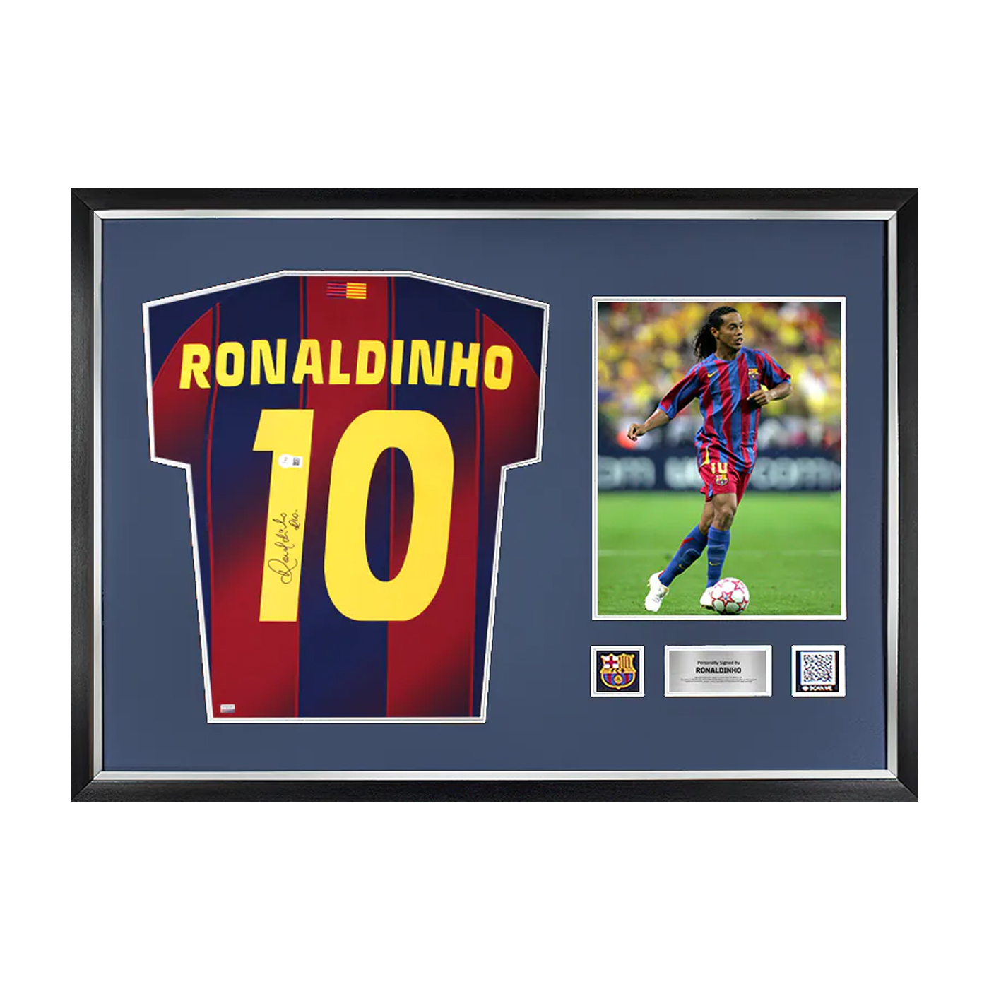 Футболка ФК "Барселона" в рамке с автографом Роналдиньо