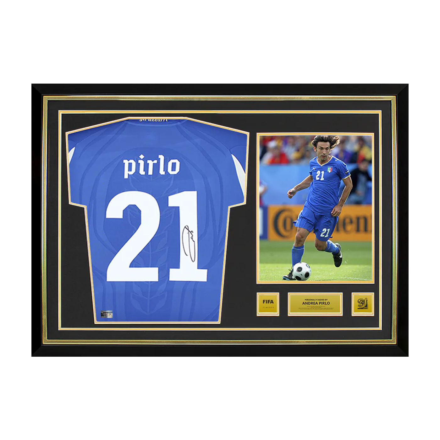 Футболка сборной Италии в рамке с автографом Андреа Пирло